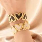 Stainless Steel Gold-Plated Heart Inlay Bangle
