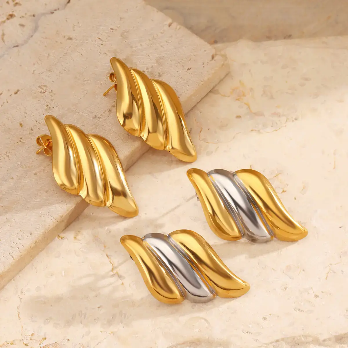 Stainless steel wave earrings