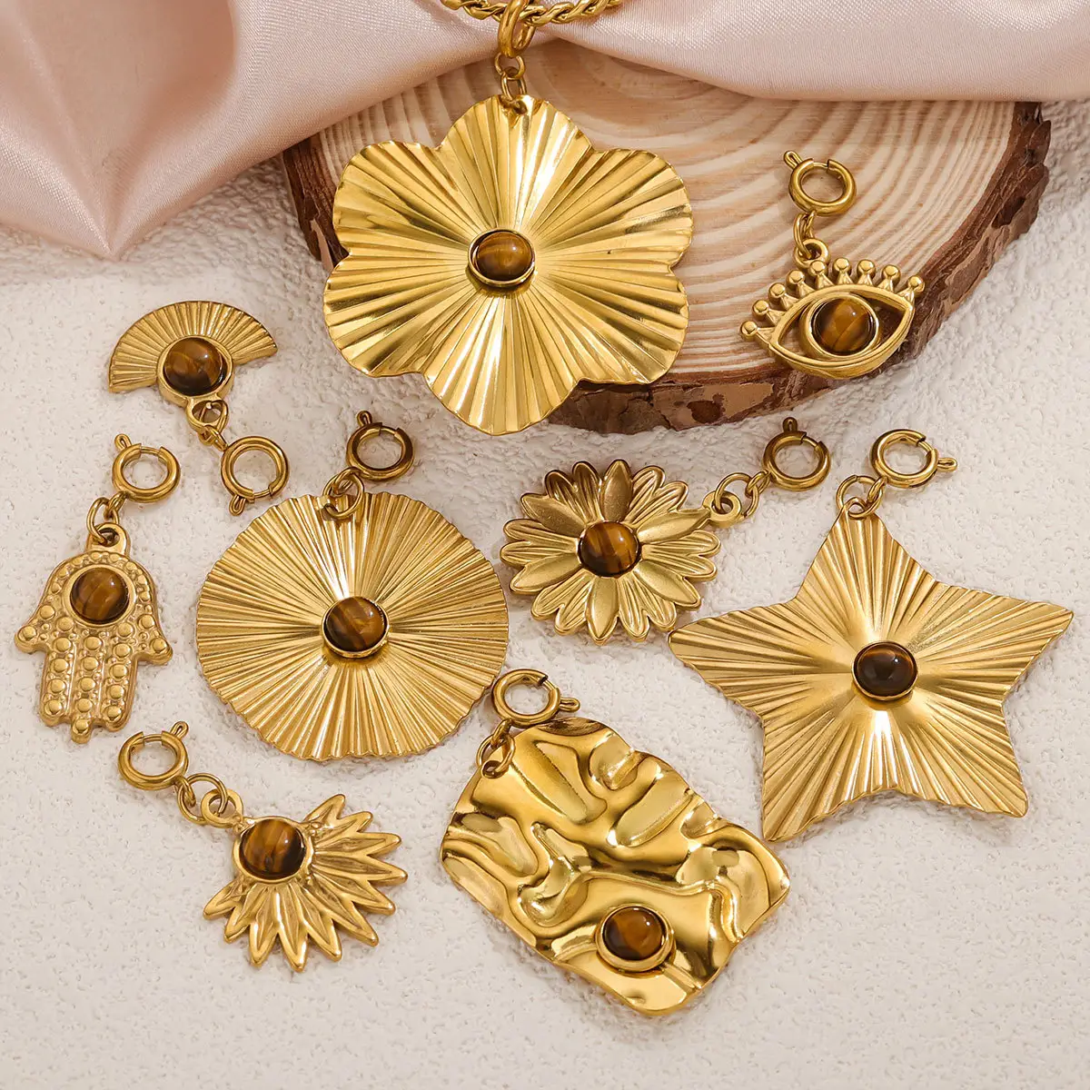Vintage natural tiger eye stone pendant